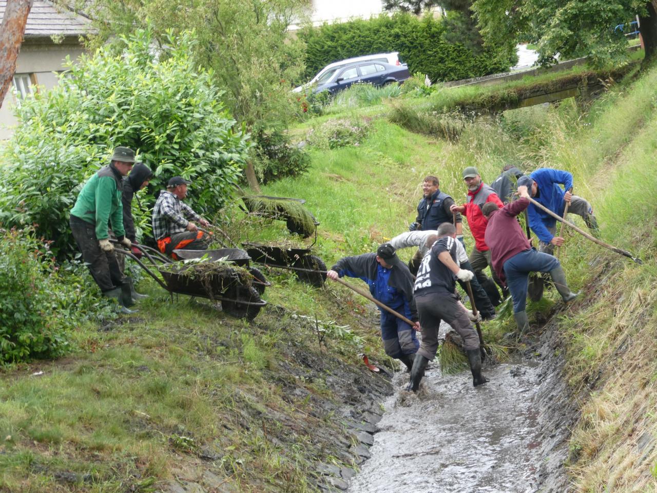 Muži s lopatami a vidlemi od rána čistili potok od nánosů bahna, větví a trávy a dále prováděli menší opravy na dětském a nohejbalovém hřišti a v přísálí. Ženy odpoledne uklidily sál, přísálí a boudy na nohejbalovém i volejbalovém hřišti. Děti pak ve skupinkách sbíraly odpadky ve Vítovicích a okolí. K obědu se muži posilnili klobáskami, ostatní si po úklidu opekli špekáčky a zahřáli se teplým čajem. Pro mlsouny připravily maminky ovocnou buchtu. Přestože nás v průběhu dne zlobil déšť různé intenzity, zvládli jsme všechny naplánované práce. Obzvlášť děti zažily i dobrodružné situace, které braly s humorem.