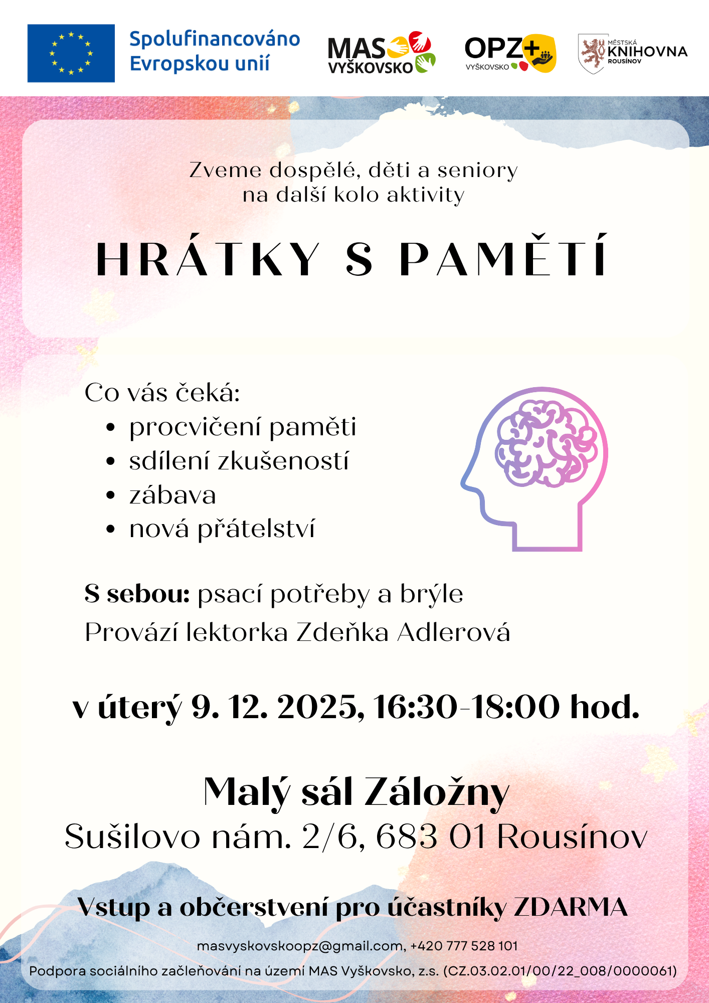Oblíbené procvičování paměti zábavnou formou s lektorkou Zdeňkou Adlerovou.